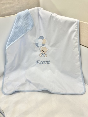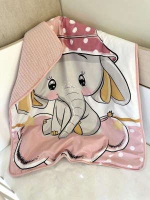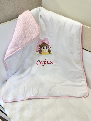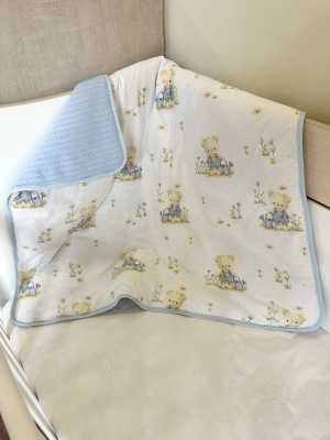 Pique Baby Blanket - "Pink Sleeping Bear" - 80x90cm