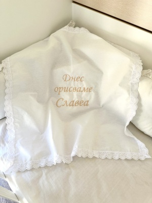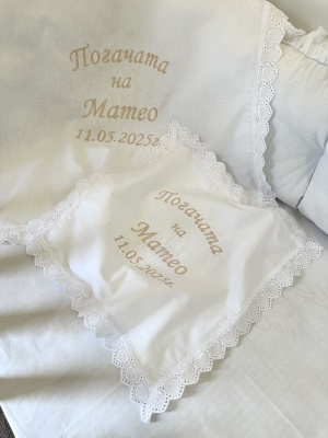 Handcrafted bread cloth with delicate embroidery, ideal for baby naming or christening celebrations.
