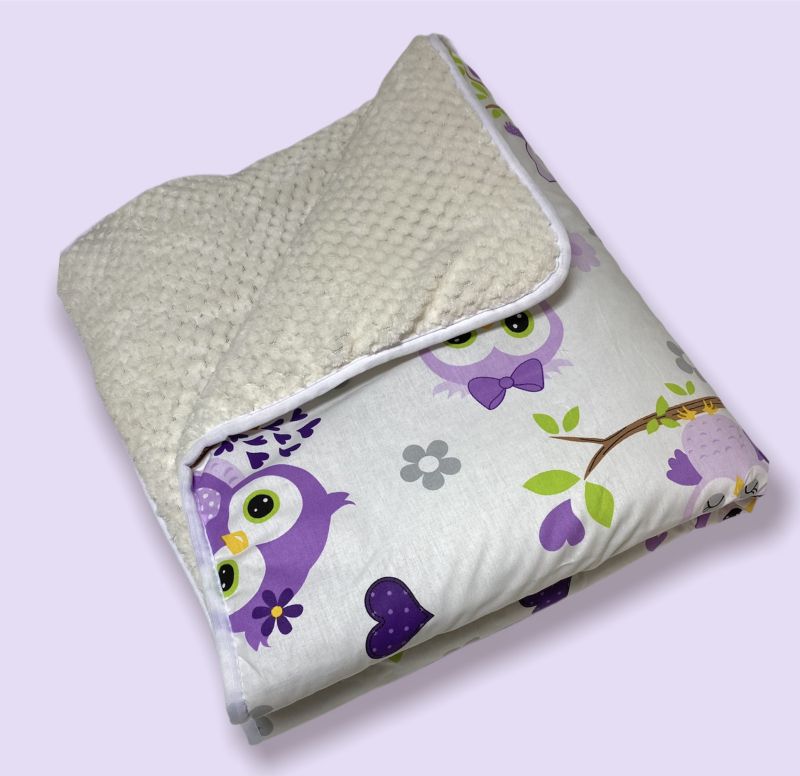 Soft Fleece Baby Blanket - "Purple Owls" - 80x90cm