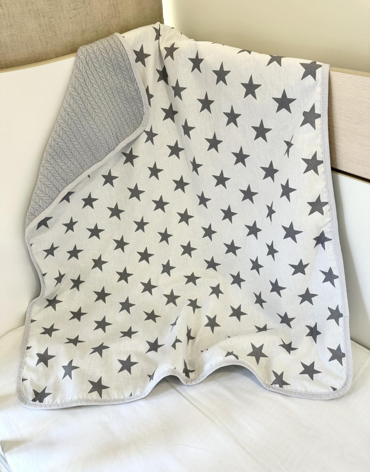 Pique Baby Blanket - "Grey Stars" - 80x90cm.