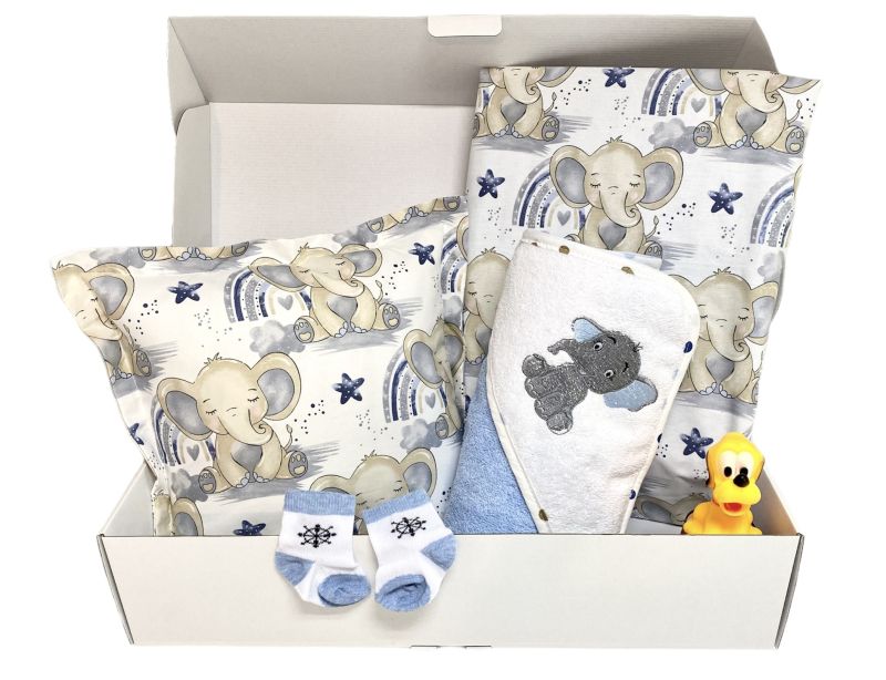 Луксозна подаръчна кутия за бебе "Малки сини слончета"