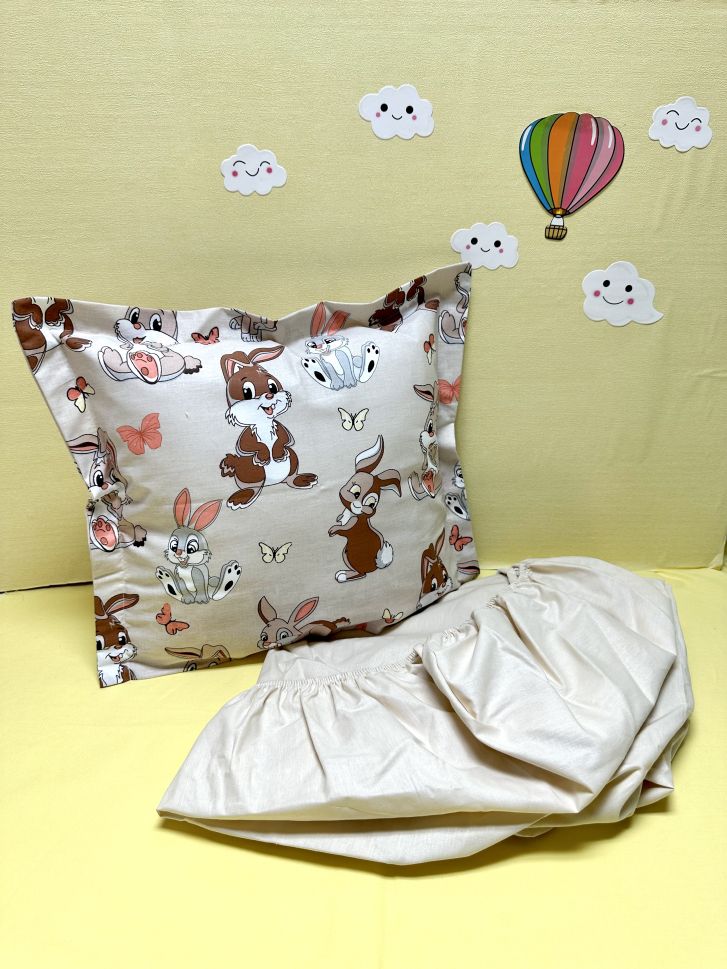 Долен чаршаф с ластик + калъфка - "Зайчета"