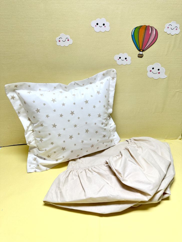 Долен чаршаф с ластик + калъфка - "Малки бежови звездички"