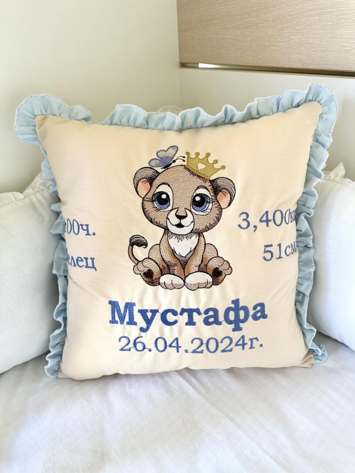 ! Възможност за бродиране на всички данни на детето: име, дата, ръст, тегло, час на раждане, ден и зодия