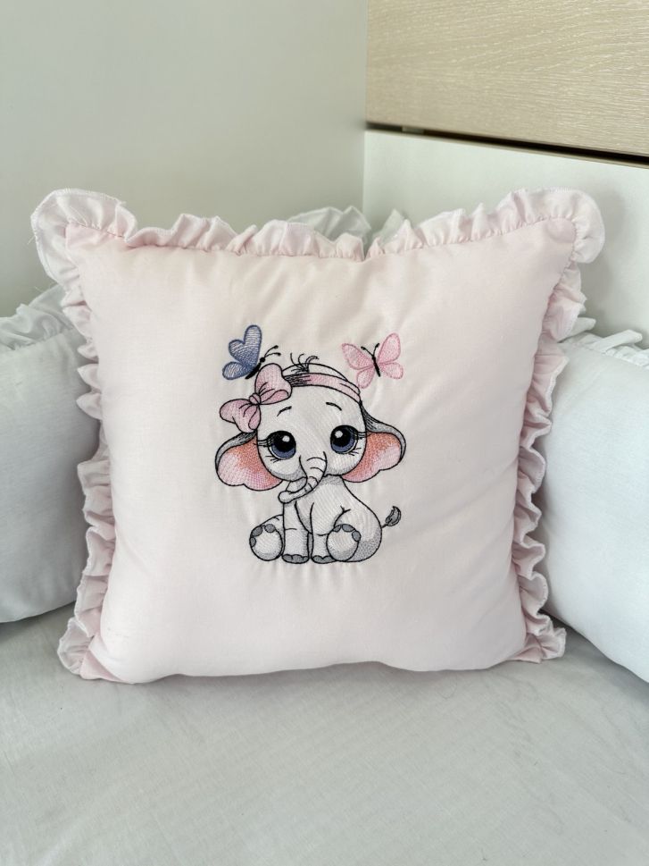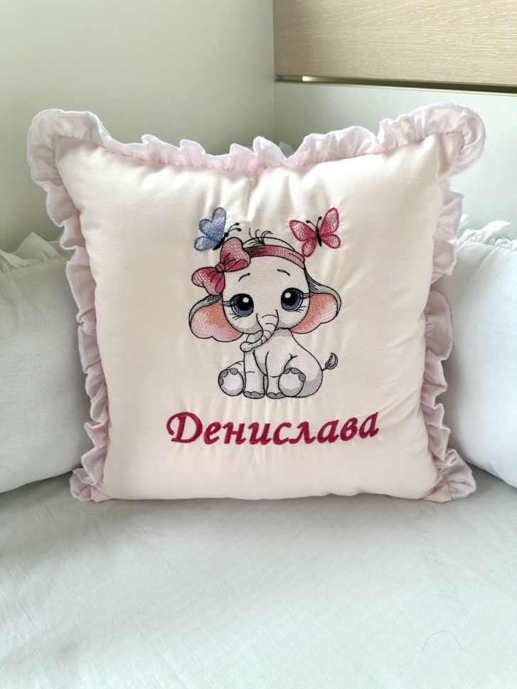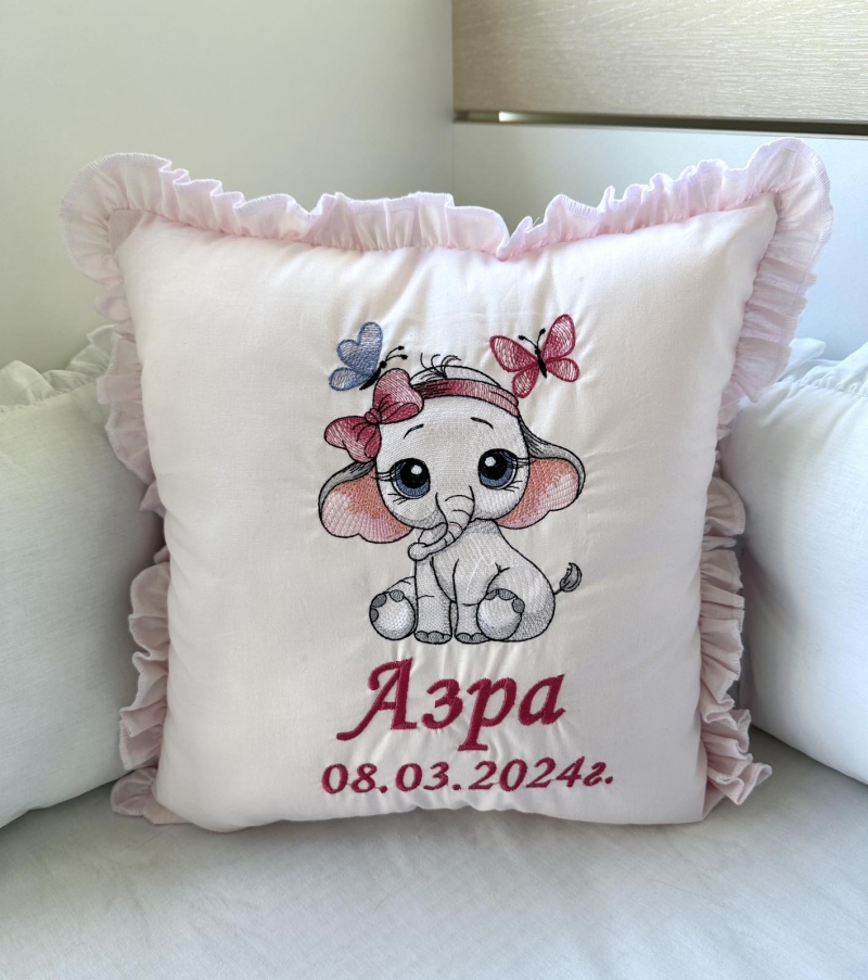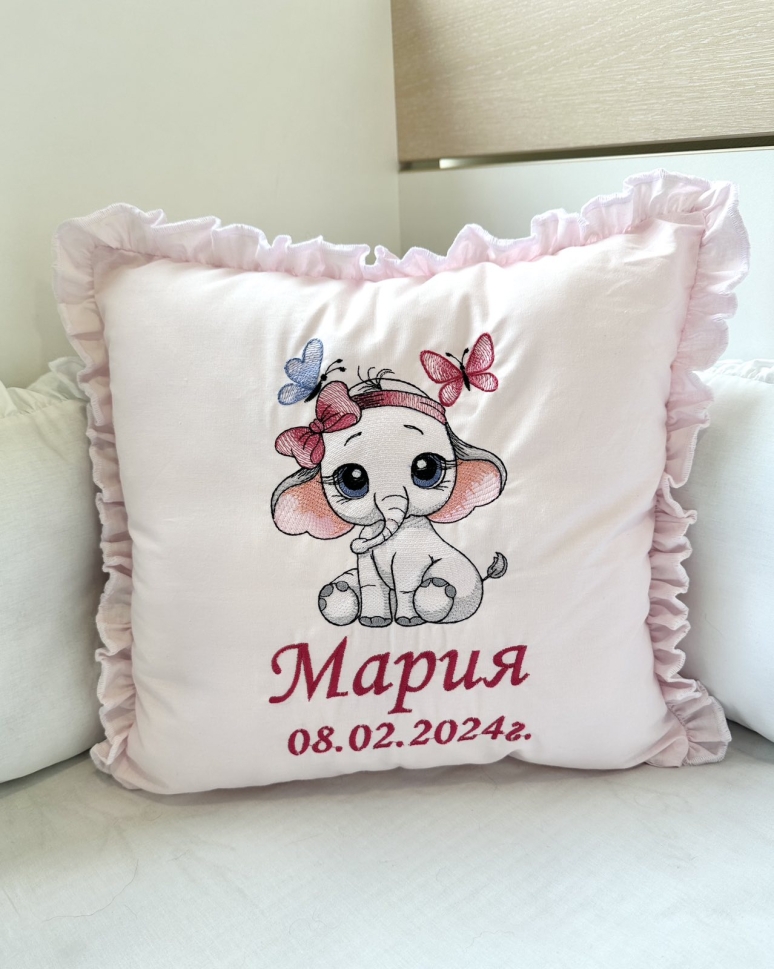 Бродирана персонализирана възглавничка за бебе "Слонче" - розово