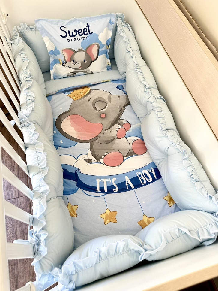 Луксозен бебешки спален комплект 8 части с обиколници "Слонче"