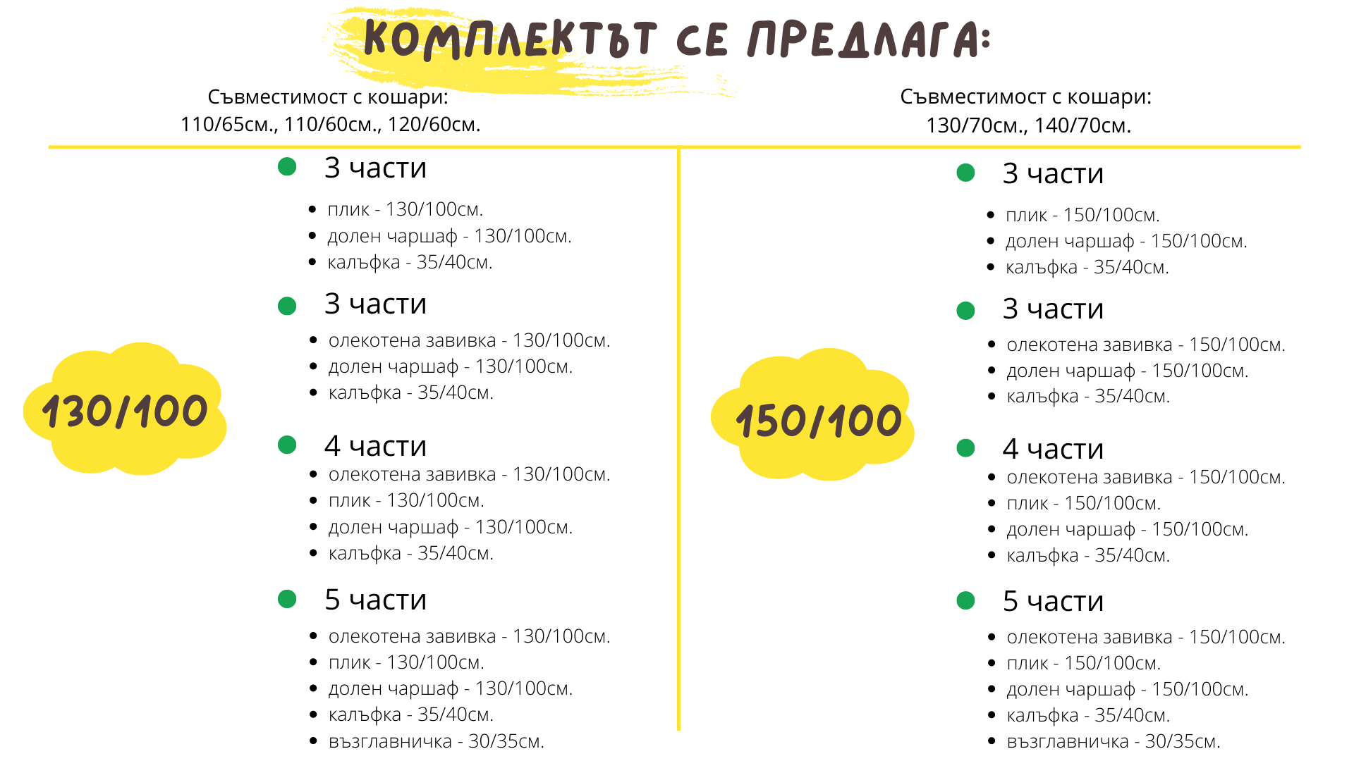 Всеки комплект идва до вас прилежно опакован, както и с инструкции и препоръки за грижа и пране.