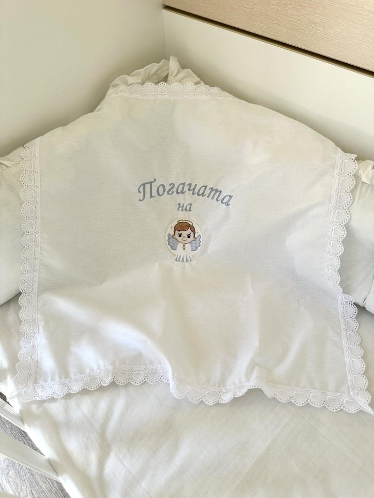 Бродирана кърпа/ месал за бебешка погача - 60/60см. - "Ангелче" - синьо