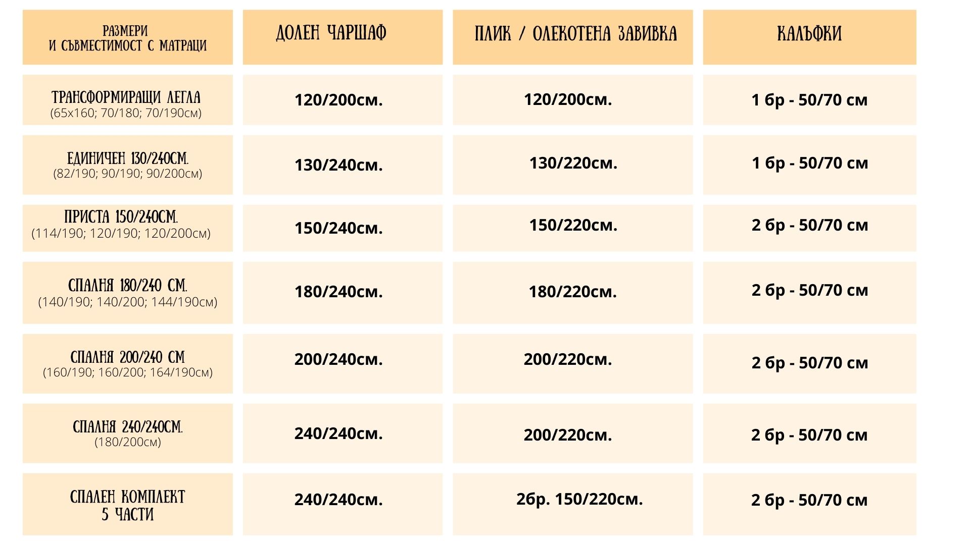 Приста 150/240см. - долен чаршаф, плик и 2бр. калъфки (+ 9.00лв.)