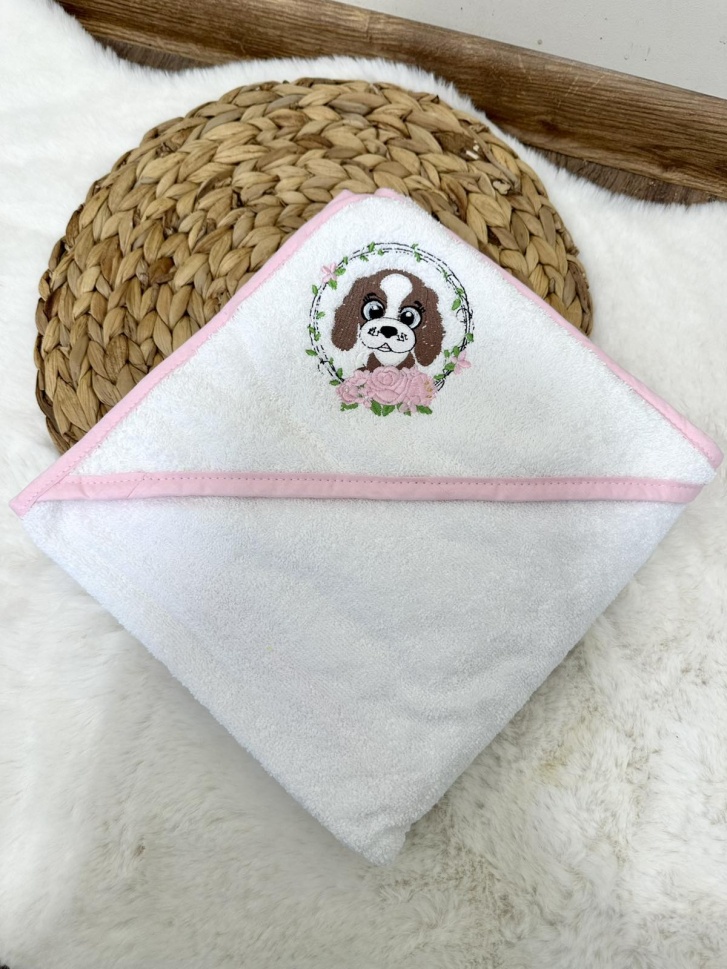 Бебешка хавлия за баня "Кученце" - бяло, 80/80см.