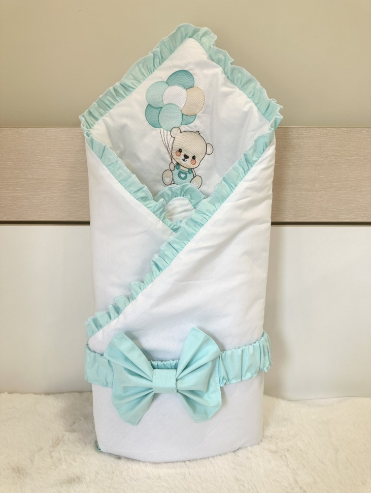 Персонализирано порт бебе за изписване с бродерия "Мече" - мента, 80/80см.
