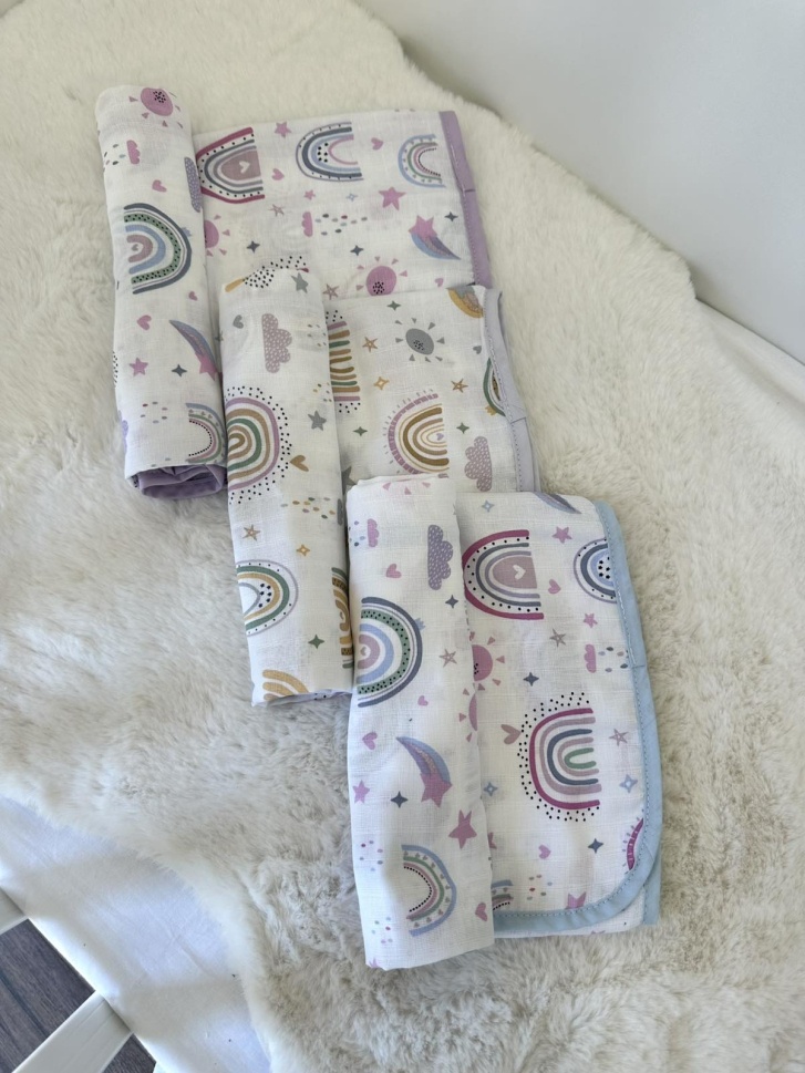 Комплект бебешки муселинови пелени - 3бр. - 80/80см. - Дъгички
