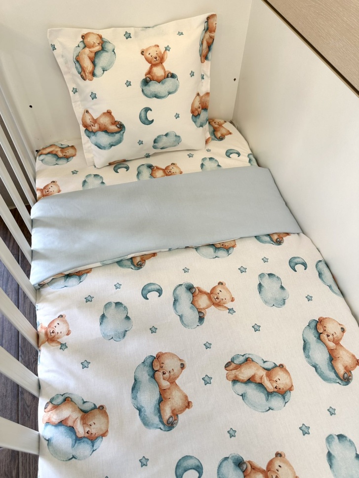 Изработен от висококачествен памучен плат - Ранфорс, щадящ и фин към нежната бебешка кожа.