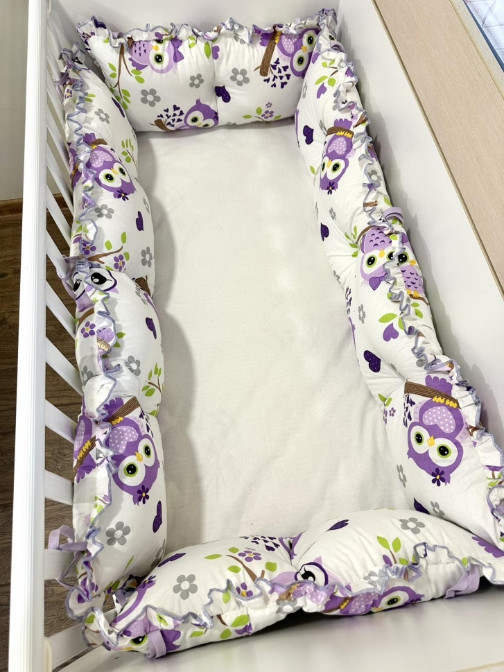 Обиколници за бебешка кошара "Бухалчета" - лилаво