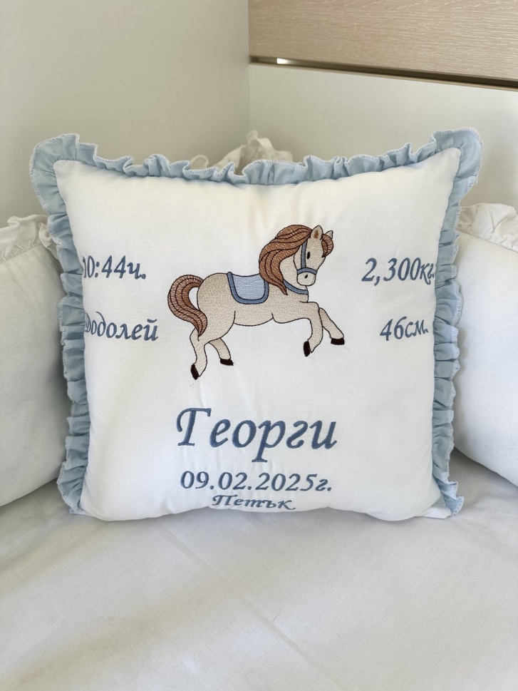 ! Възможност за бродиране на всички данни на детето: име, дата, ръст, тегло, час на раждане, ден и зодия