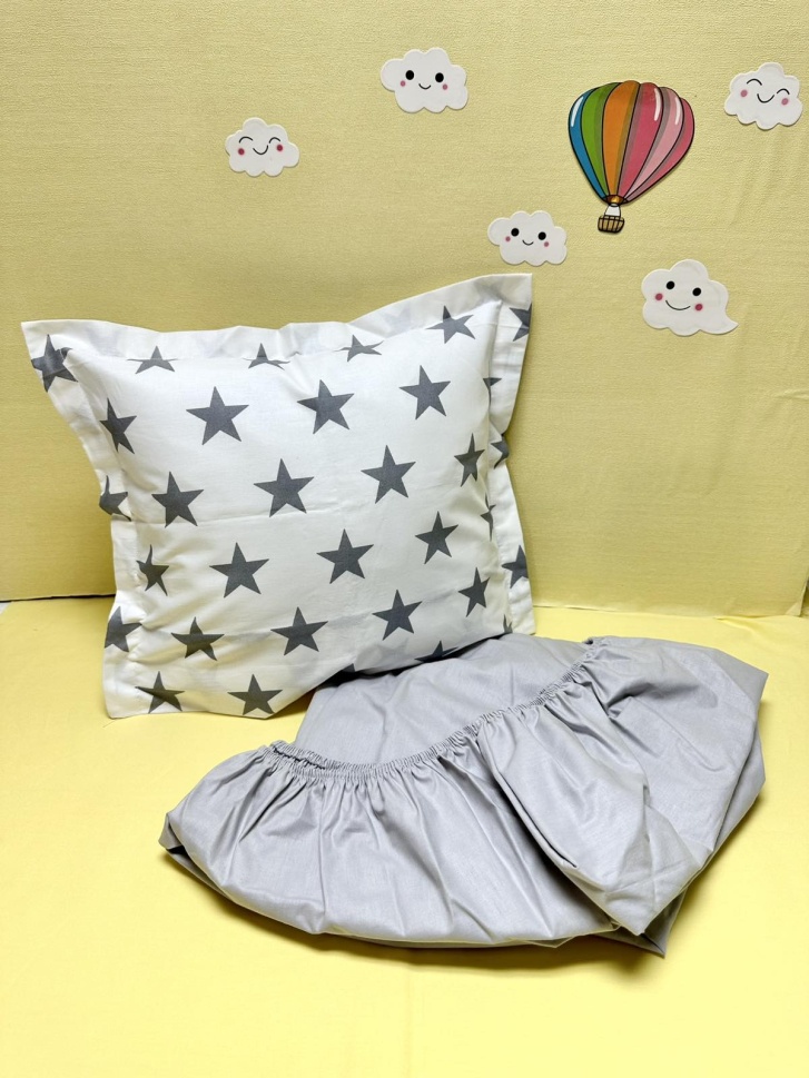 Долен чаршаф с ластик + калъфка - "Сиви звезди"