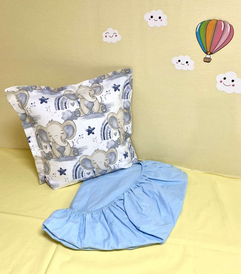 Долен чаршаф с ластик + калъфка - "Слончета"