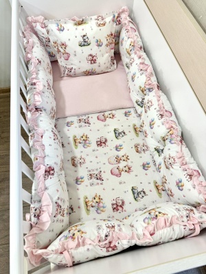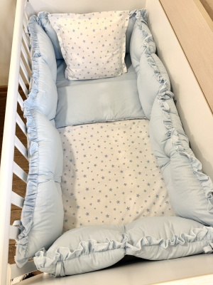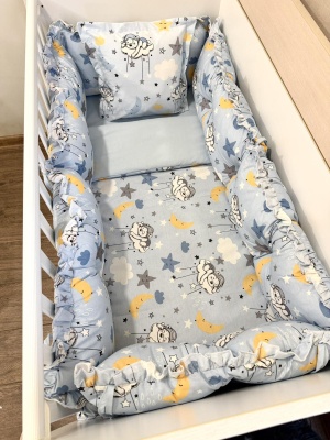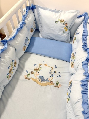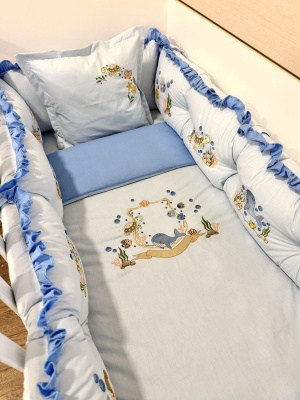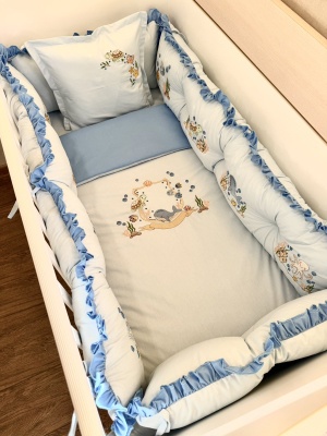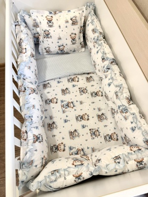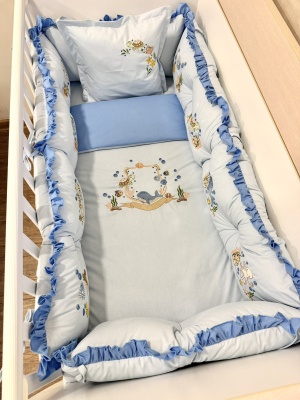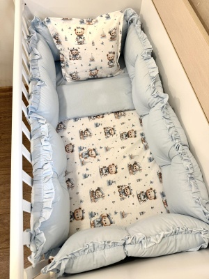Бебешки спален комплект 8 части с обиколници "Сини панди"