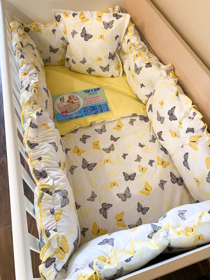 Бебешки спален комплект 8 части с обиколници "Жълти пеперуди"
