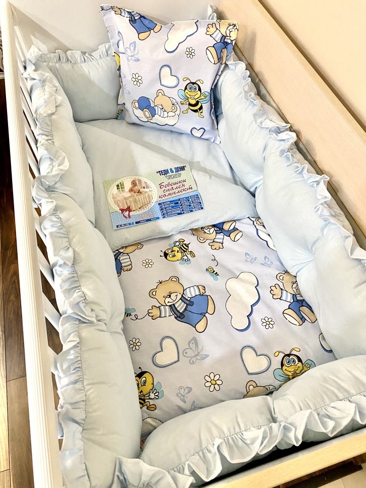 Бебешки спален комплект 8 части с обиколници "Сини мечета"