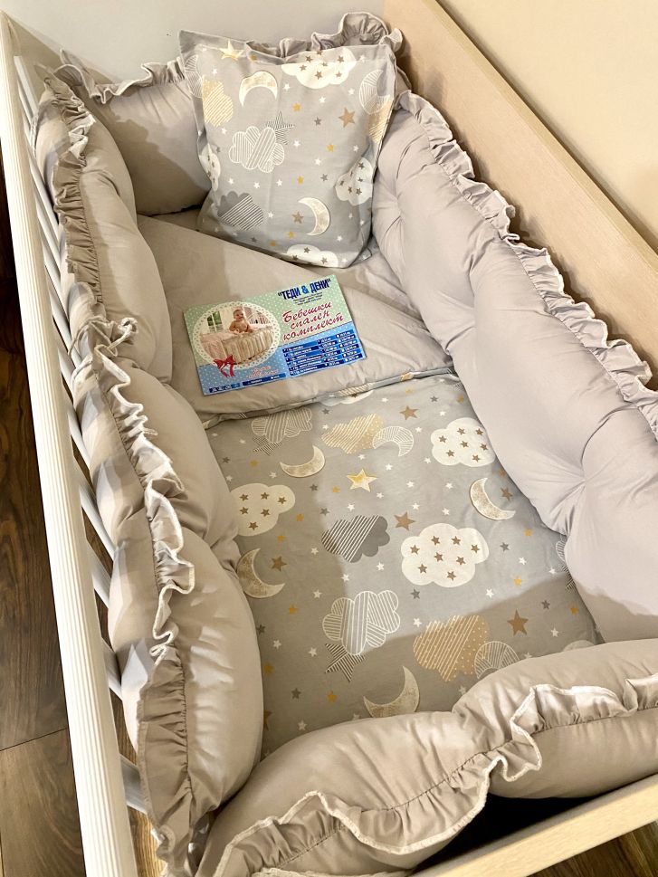 Бебешки спален комплект 8 части с обиколници "Сиви облачета"