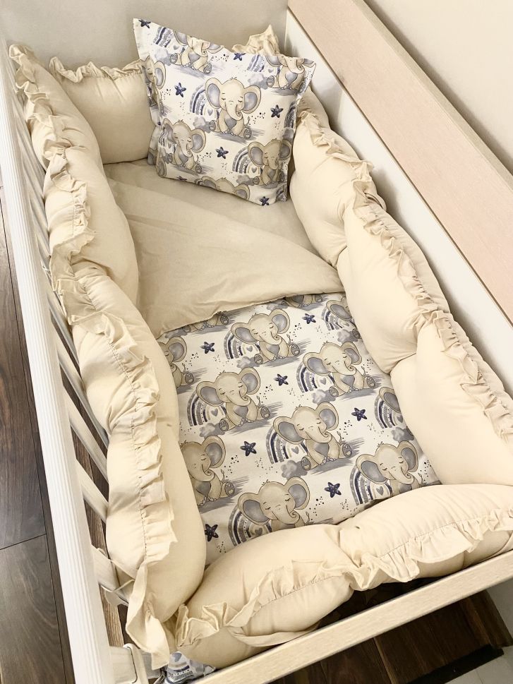 Бебешки спален комплект 8 части с обиколници "Слончета"