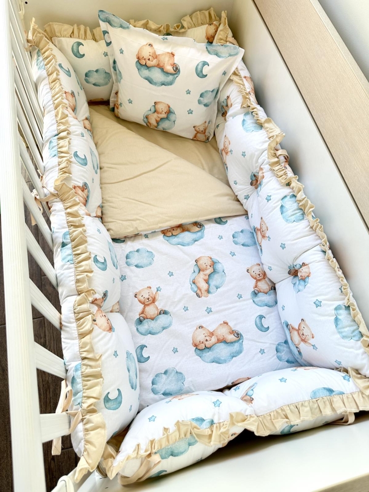 Бебешки спален комплект 8 части с обиколници "Мече" - бежово