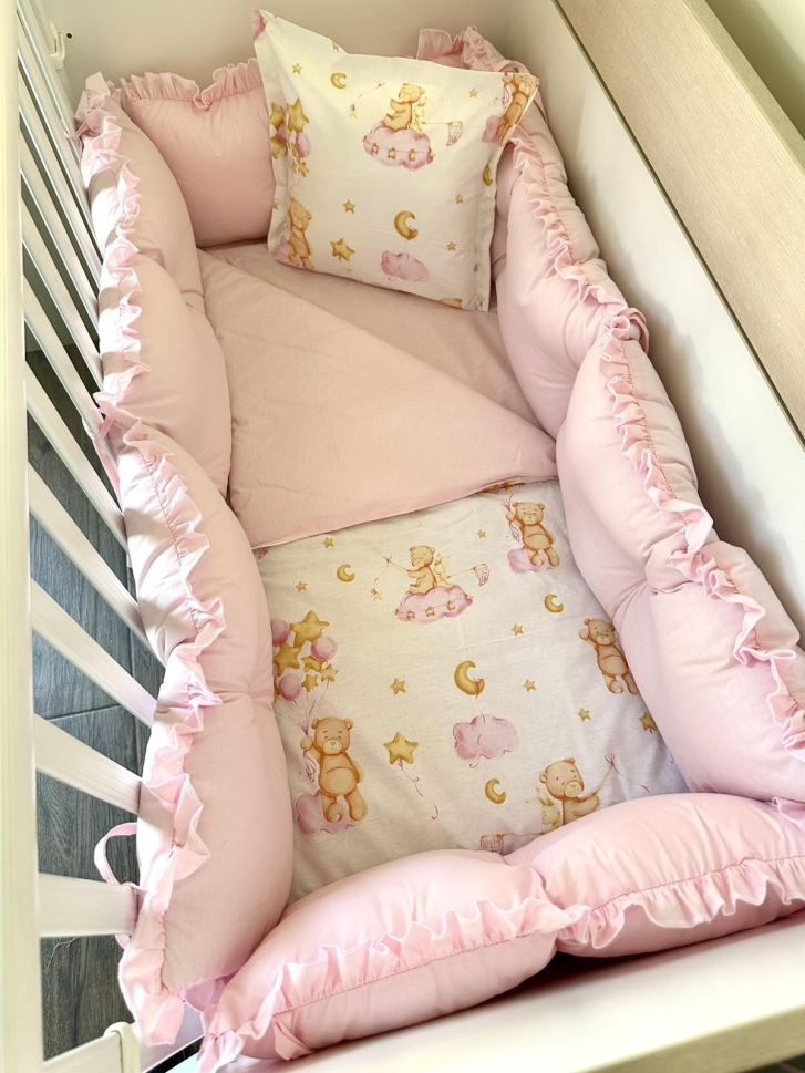 Бебешки спален комплект 8 части с обиколници "Розови сънища"