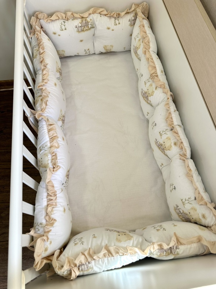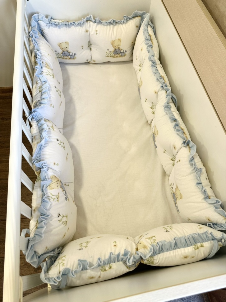 Бебешкият обиколник се поставя в кошарата и играе важната роля да предпазва вашето дете докато спи или играе.