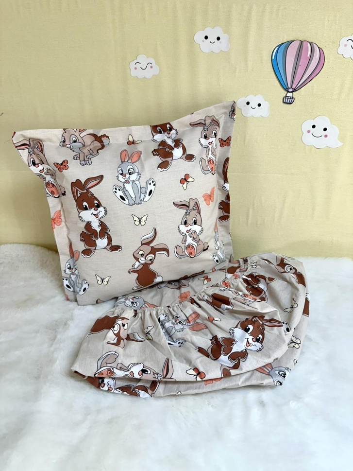 Долен чаршаф с ластик + калъфка - "Зайчета"
