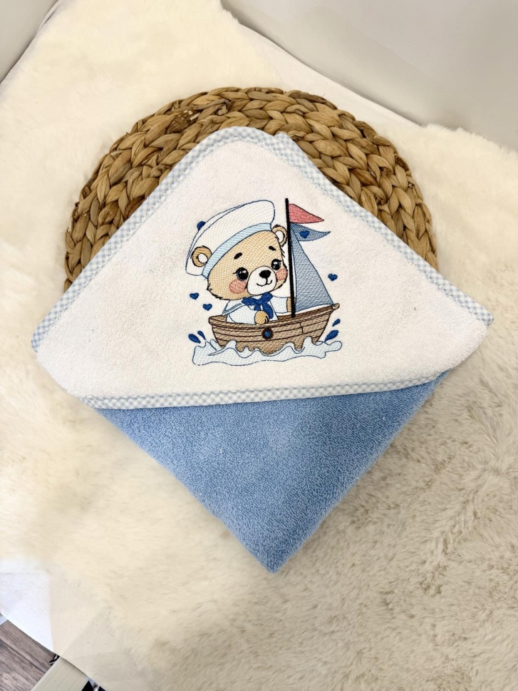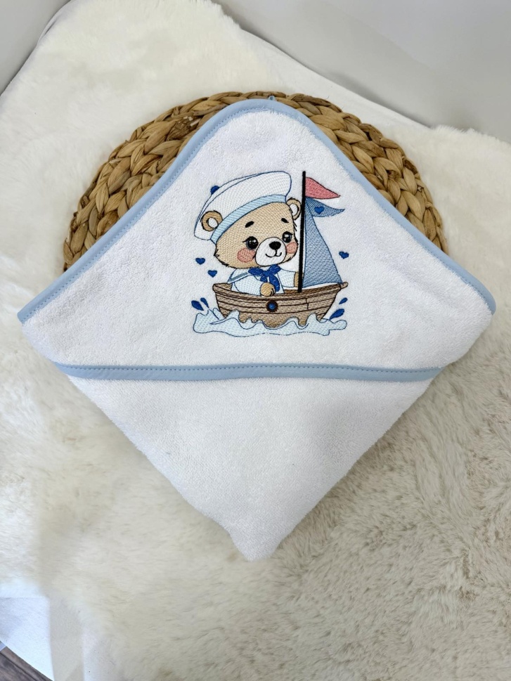 Бебешка бродирана хавлийка за баня "Моряче"